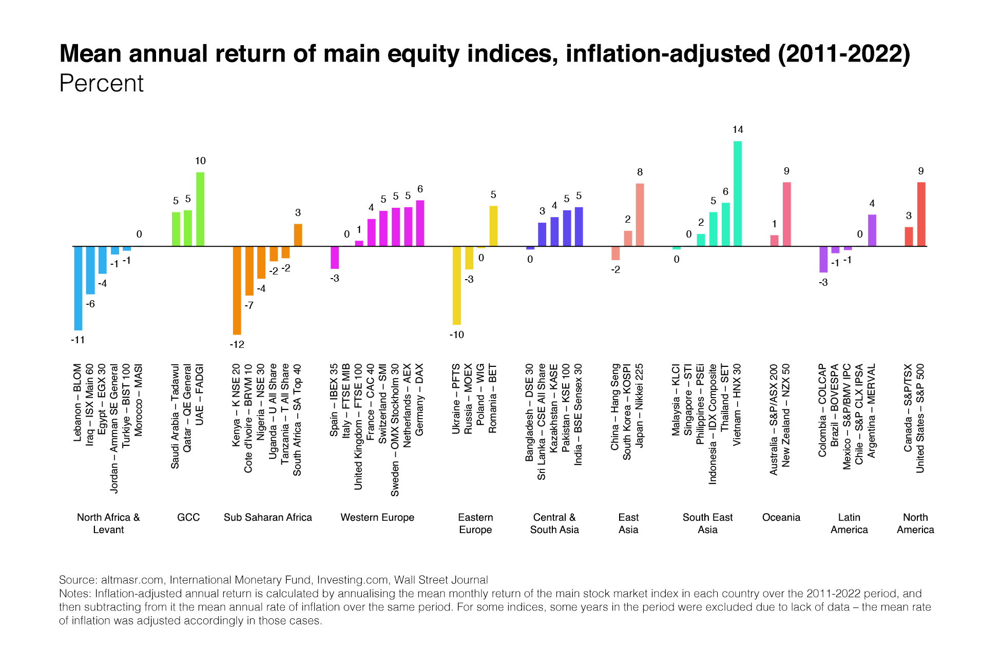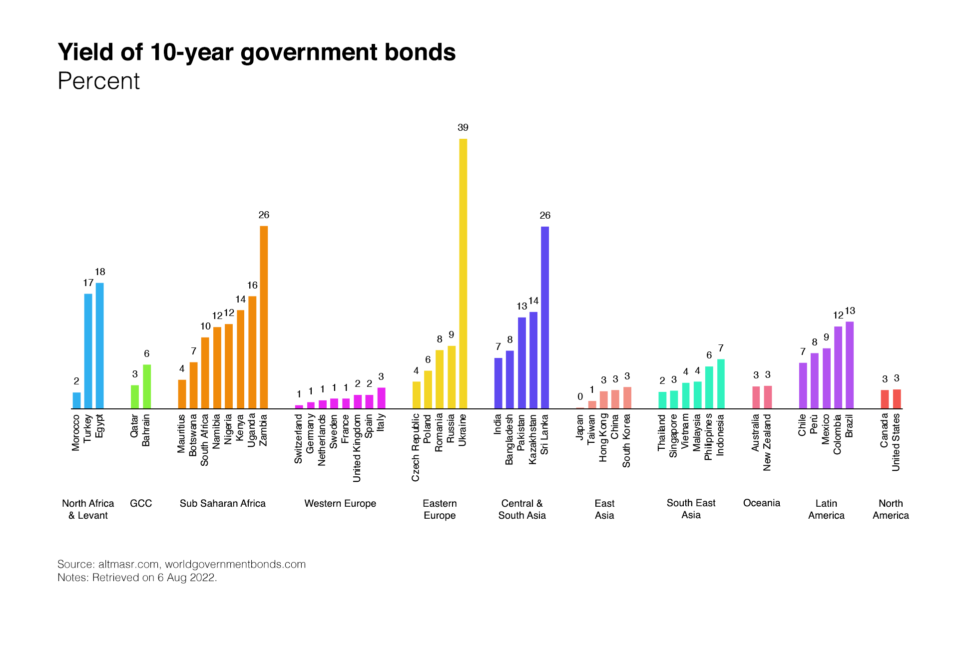 Democratising access to money- and fixed-income markets would also create meaningful value to savers. Treasury bills and bonds in the South commonly offer exceptionally high yields – ones that are more attractive than implied domestic stock market returns. This is particularly true in countries with chronic current account deficits and lots of government debt. These high yields are a bargain for domestic deposit-taking institutions (notably Egyptian banks) – they’re low risk, liquid, and the earned spread (after accounting for the meagre rate paid to depositors) is exceptionally lucrative. Availing households access to participate directly in such markets would create significant value for them.